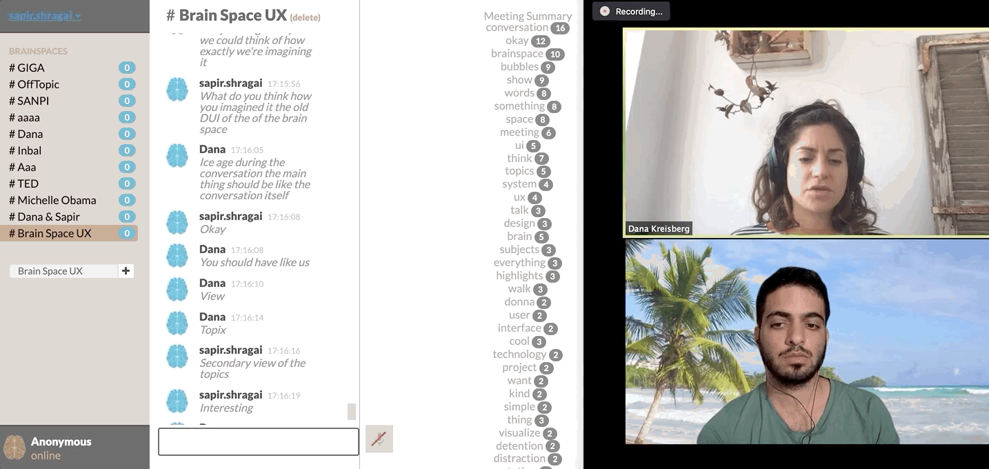 An AI SaaS system for visual summarizing meetings and lectures. The system integrates with different conference tools and gives a real-time visualization of the meeting content. Users are getting the highlights of the conversation which can be beneficial for focus and follow-ups.